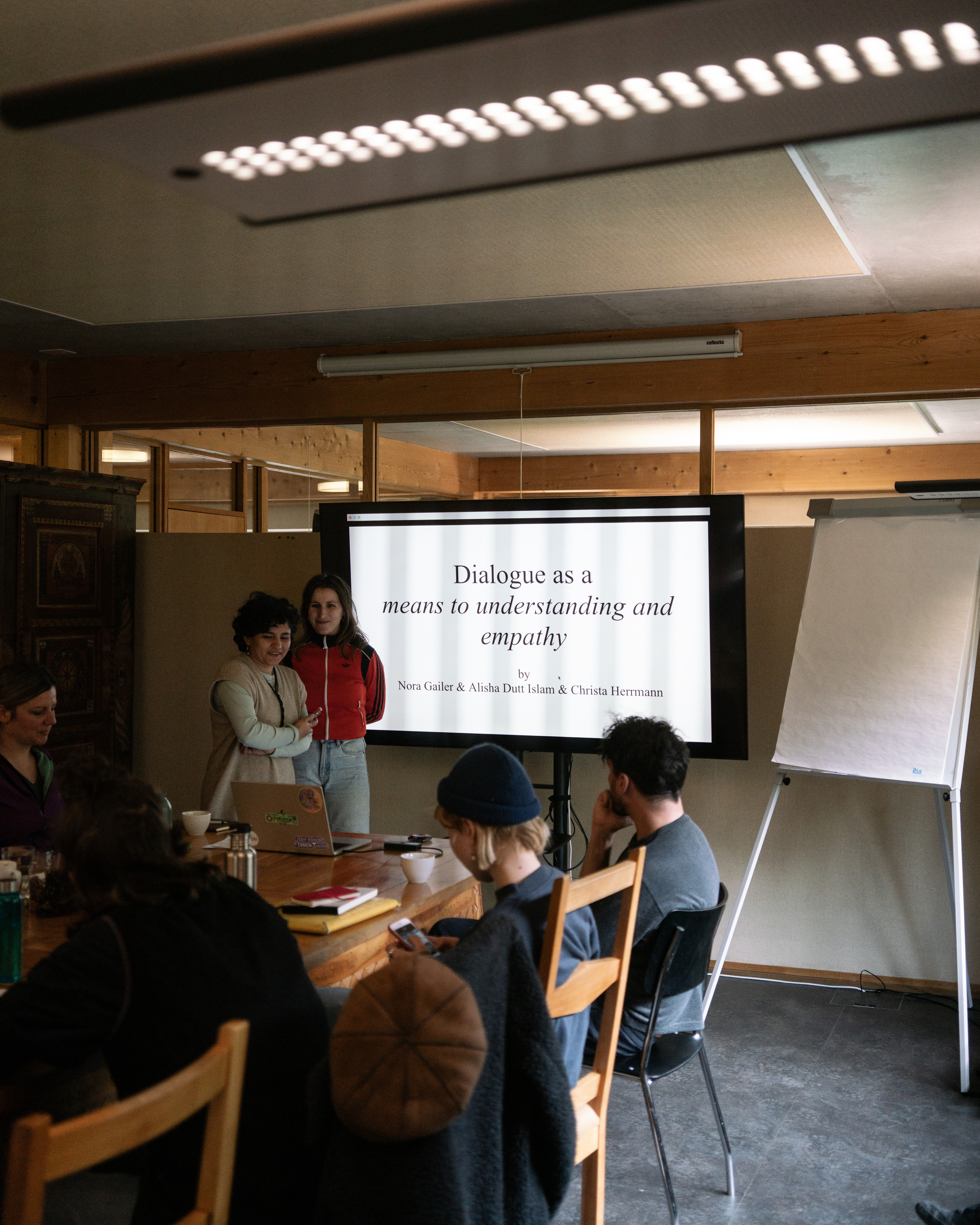 Following inputs from Yvonne Schmidt (EcoArtLab), Johanna Paschen (EcoArtLab), Christina Aebischer (Helvetas) and exciting insights into the ongoing Residency "Dialogue as a means to understanding and empathy" by Alisha Dutt Islam and Nora Gailer, as well as a field research as part of an excursion to the Ballenberg for the opening of this year's themed trail "on the move across the world", students were able to develop their own project ideas.
